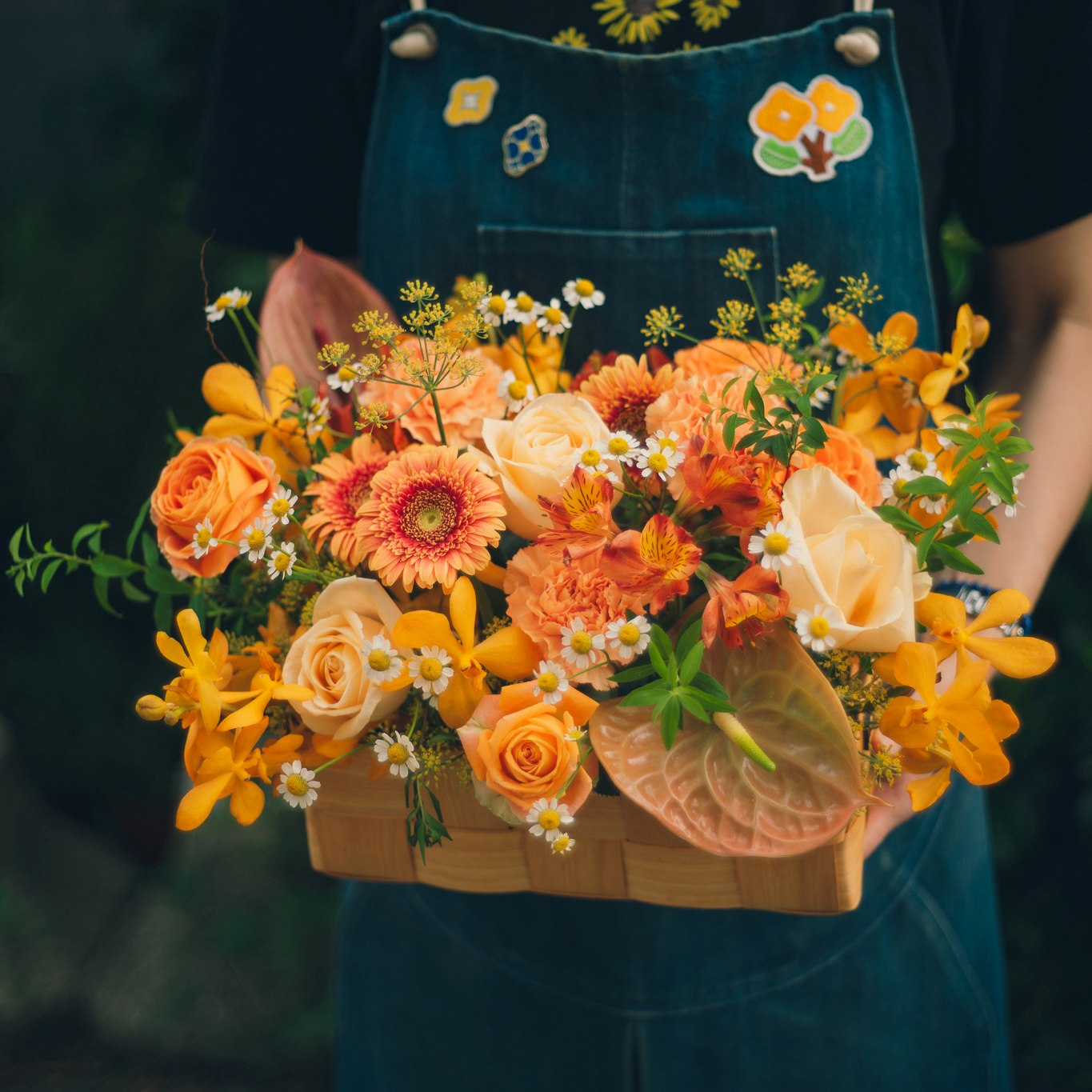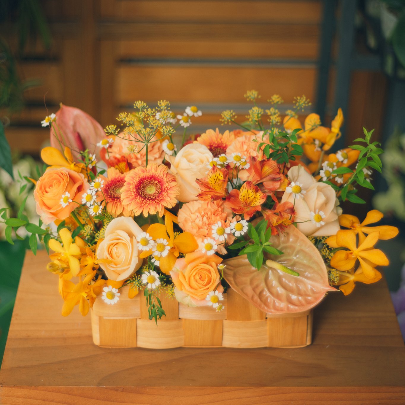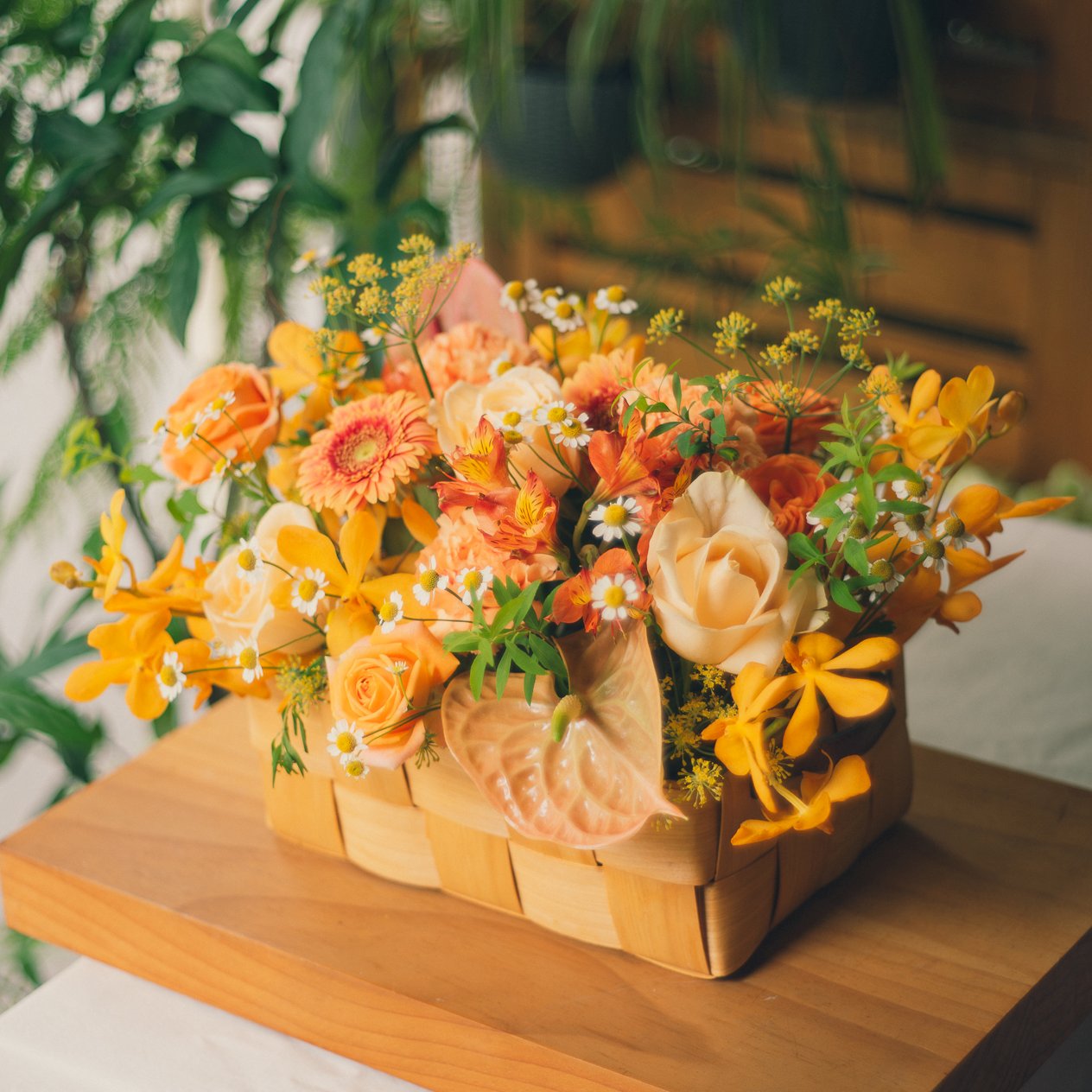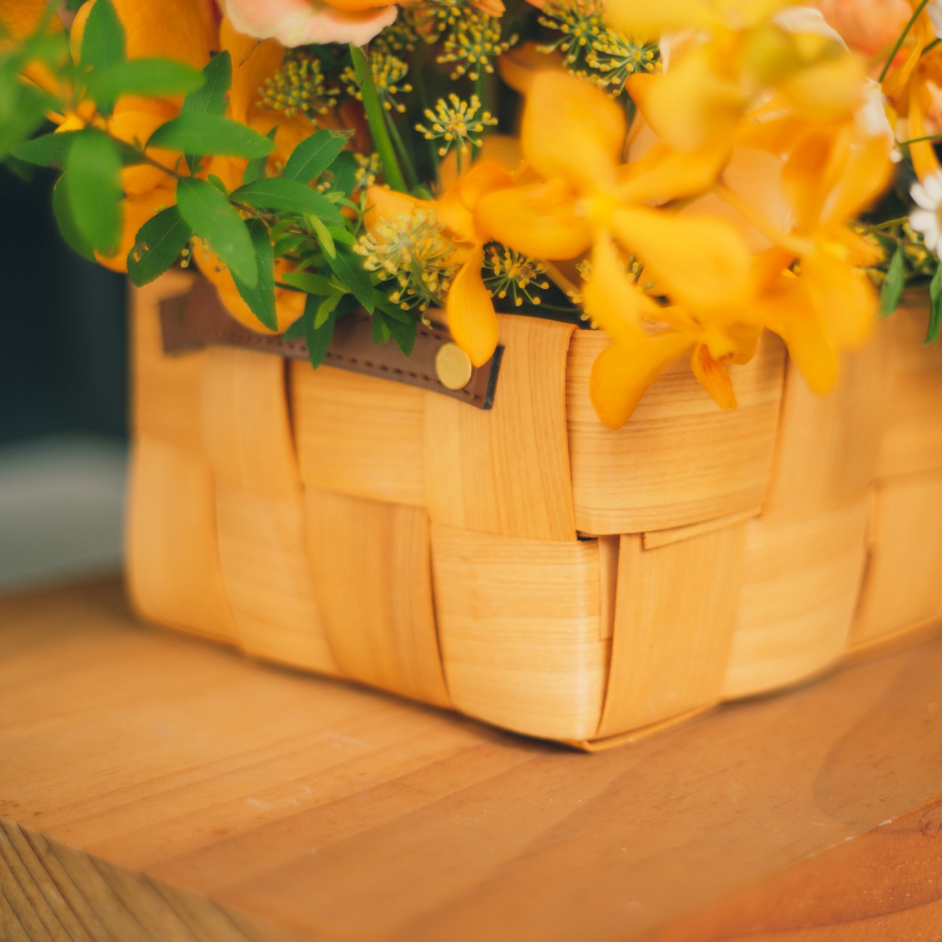 與古樸蘭花的風格不同,鮮花系列我們以自然的西式設計,選用木片大格編籃,兩側有著仿皮小提耳,穩固好端,也可在花期結束後成為居家質感收納籃。
