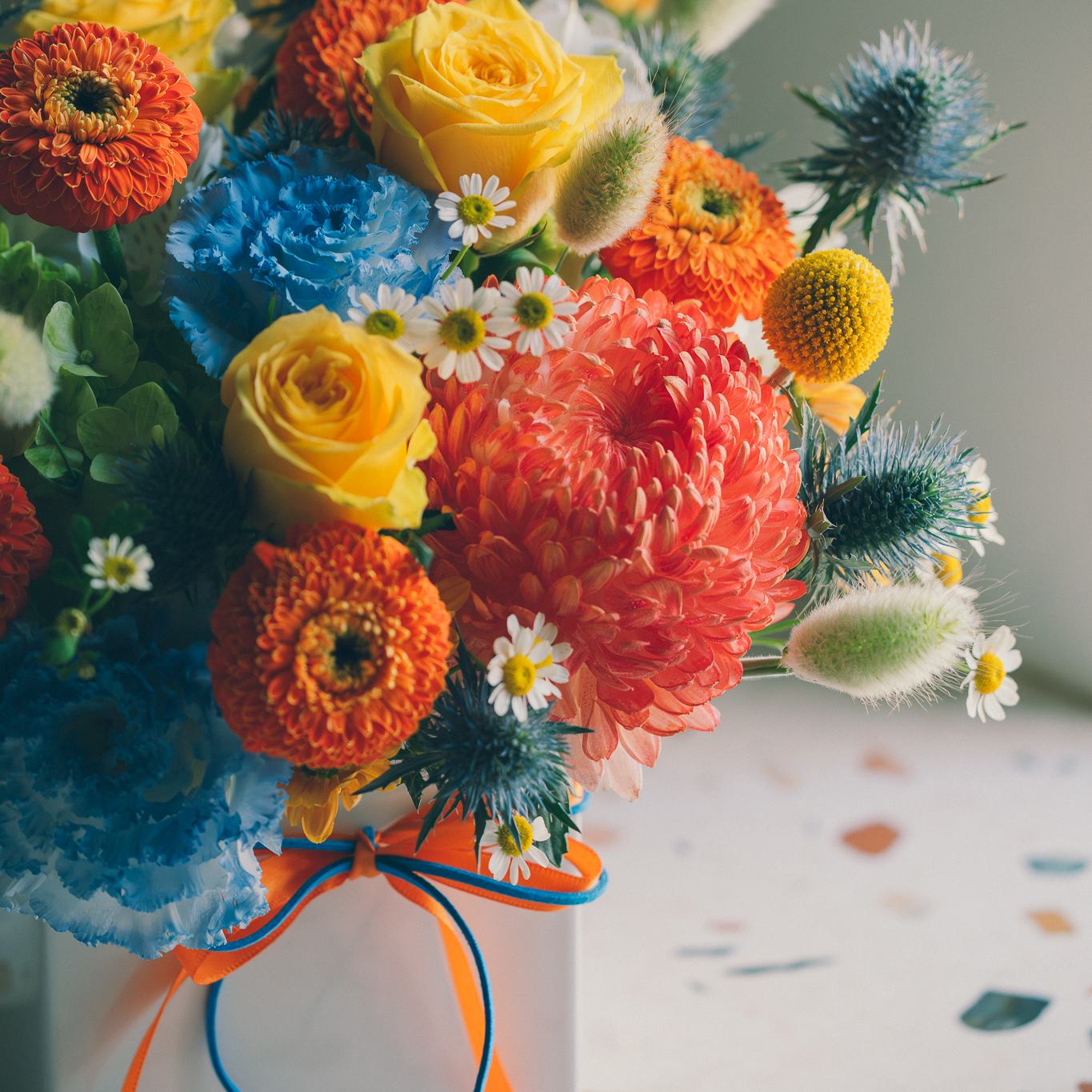 農曆年前的忙碌時刻,用一盆柔和色調的盆花安頓身心。適合放在玄關或茶几,成為冬日的暖心之作。